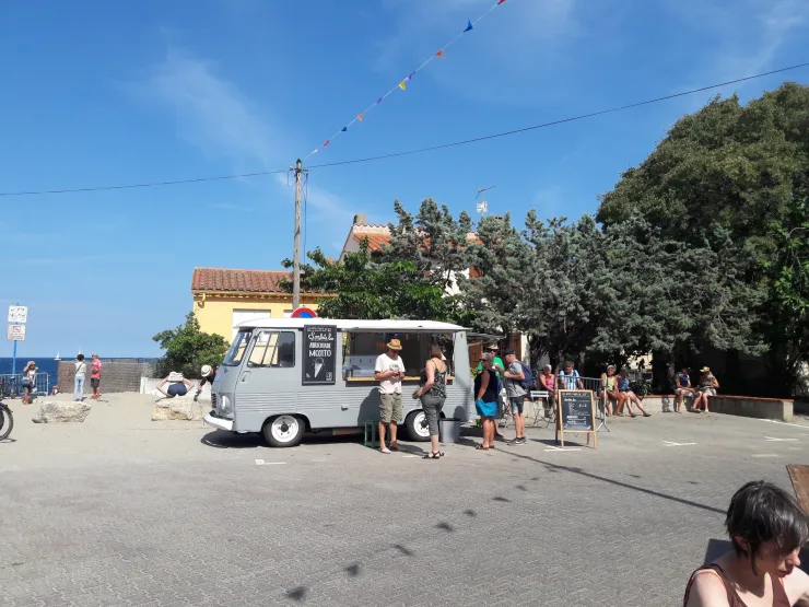 D’avril à octobre, nous nous déplaçons régulièrement dans le département au fil des marchés gourmands, des fêtes et manifestations, avec notre fidèle Peugeot J7 de 1972, transformé en Ice-Truck !